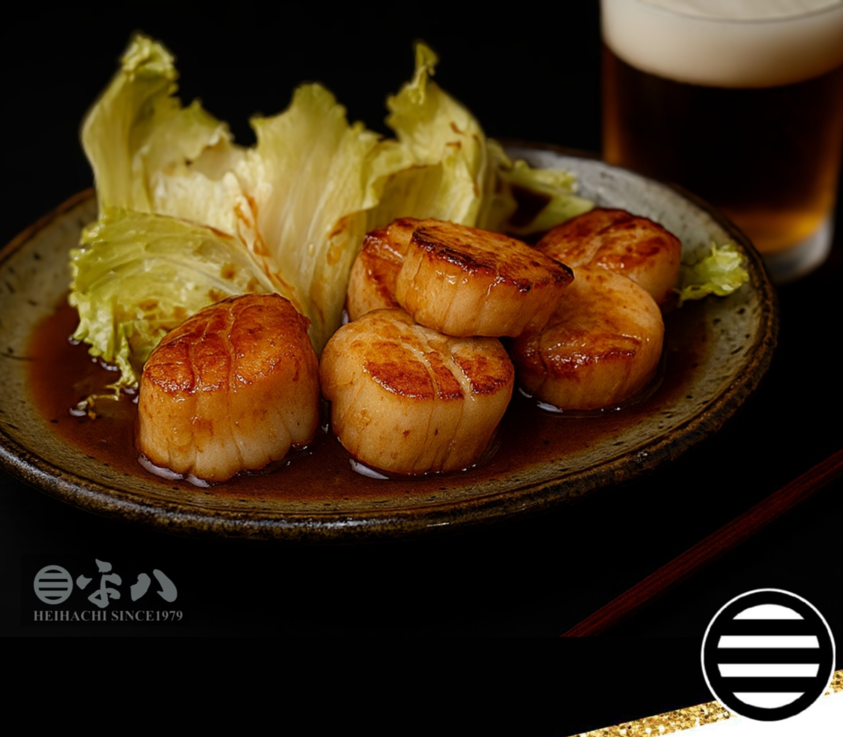 北海道産の刺身でも食せる新鮮な生のホタテを、本日はソテーにてご提供させて頂きます。生ホタテと相性抜群のバターと醤油で濃厚に…でも、その豊かな風味を消さぬよう、活かすよう、繊細に…最良のバランスでソテーした一品です。焼き海苔を添えておりますので、お好みで、磯辺巻きにてお召し上がりいただければ、また一味違った味わいをお楽しみいただけます。北海道産“生”ホタテの贅沢な一品を、どうぞご賞味下さい。